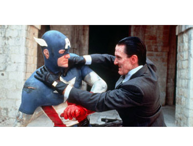 Well I found that the Captain America movie can be viewed online for free! No not the new one but the old one from 1990!!! No this isn’t the best film ever, infact it kinda sucks, but it’s alot of fun anyway. It’s also quite a tough movie to track down so in the meantime while we’re all wondering who’s going to be the next movie Cap we can all take a look at the this version and see that an improvement on it shouldn’t be too hard to pull off!
