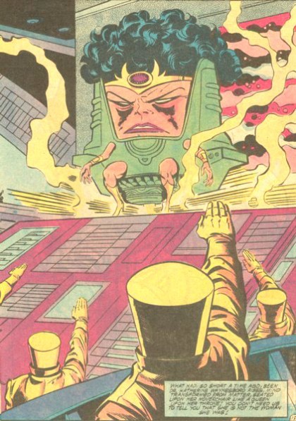 This is where things get pretty awesome and twisted. In issue #290 the Abomination tries to deliver Kate Waynesboro to Modok but is intercepted by A.I.M.(The organization that created Modok) instead. Before you know it A.I.M. has got her in a transformation chamber to make her a new and improved Modok! Wow, imagine finding out the next time you saw your girlfriend she was going to look like Modok?! That’d make you pretty pissed off right? Well it pisses off the Hulk alright but unfortunately he’s to late and he’s introduced to his new girlfriend-Ms. Modok!!
