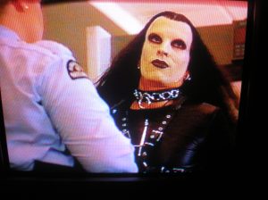 The premise is pure support for the subtitle pun “heavy metal”. Self-proclaimed antichrist rock star Slade Craven has decided to film his final concert en route a pastel-upholstered, pretzel-lobbing airplane (which transcends any definition of metal that I can think of). But not all is rosy in hell. Rutger (BLADE RUNNER) Hauer, with a notably larger face, plays a devil worshipping pilot and believes Slade Craven is the “fake messiah”. He and globby-eyed VJ (top model Monika Schnarre) think Craven’s party should be crashed into a church in Oklahoma. This opens the seventh gateway to hell, unleashing the true satan.