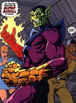 This is a great concept I always enjoyed as well having mismatched super battles. The Super Skrull was the last villain I expected to see go up against Sasquatch. But it’s always cool to see villains and heroes not up against their usual foes. And let’s face it nobody draws the Super Skrull or Sasquatch as good as Byrne…