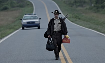 Ok all of my doubts are officially gone about the upcoming television adaptation of The Walking Dead. I just recently saw some of the stills taken for this epic series and it literally blew my mind!! I checked them out at Bloody Disgusting and thought I really needed to put a few of them up here in case anyone had any doubts on just how cool this show is shaping up to be. First off the this image here of Rick Grimes walking on the highway practically gave me the chills upon first sight. Andrew Lincoln who’s playing Rick looks fantastic-don’t you think??