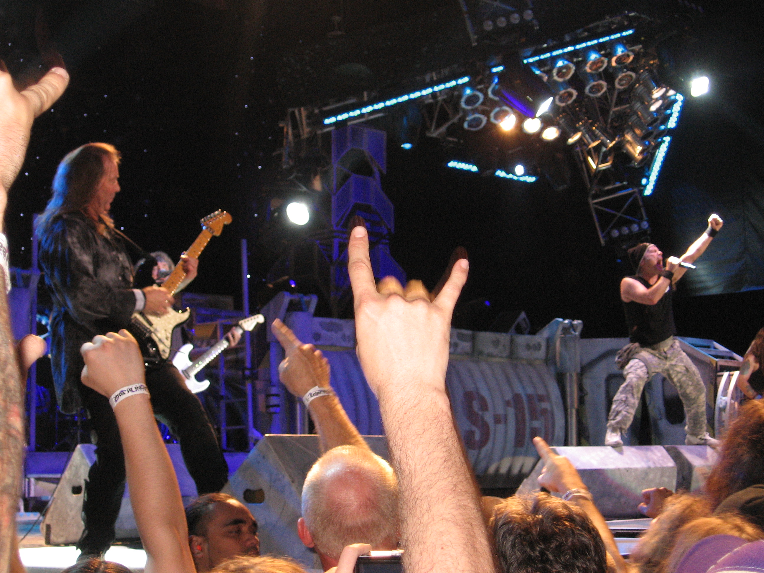 Ok last night was totally fucking epic! I finally saw Iron Maiden live in Auburn Washington and must say it was one of the greatest, if not the BEST live show I have ever seen! We were in the pit and managed to get about 15 feet away from them. It has been a long damn time since I have seen a band with as much energy as Maiden. These guys are in their Fifties and have 10 times the energy than most bands out there half their age. I was truely blown away to see a band have so much fun on stage performing every song with a smile and sounding damn near perfect.