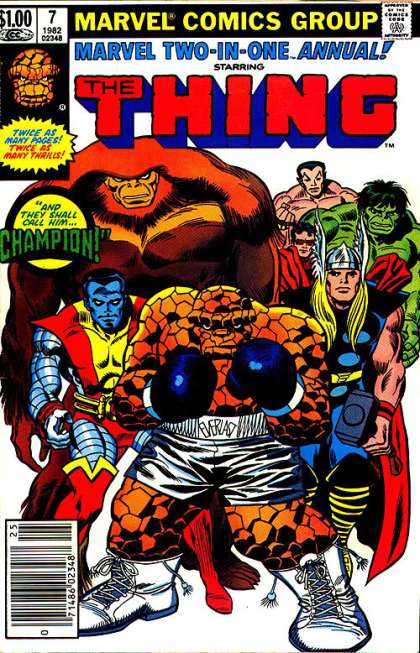 This particular cover from Marvel Two In One Annual #7 has to be one of my all-time favorites. Mainly because as a kid this particular issue was one of my all time favorite comic books ever. It’s a straight up boxing tournament where earth’s mightiest, Marvel’s heavyweights are all gathered to take on none other than the Champion. An unbeatable blue skinned red haired freako alien boxing fanatic put’s our favorite hero’s into a contest to simply see if any can actually provide a sufficient challenge to him.