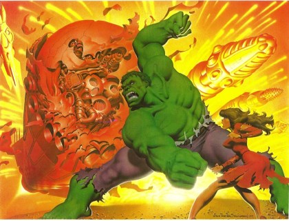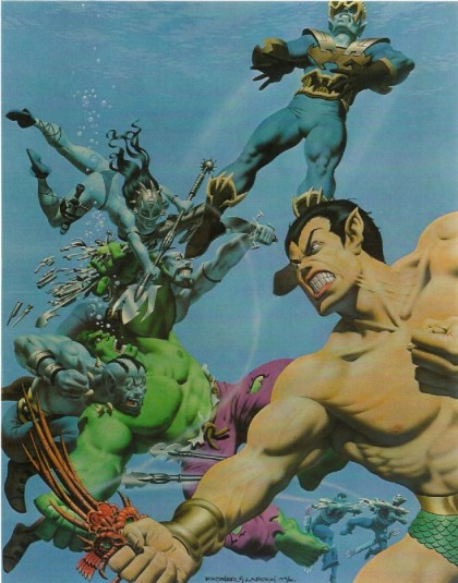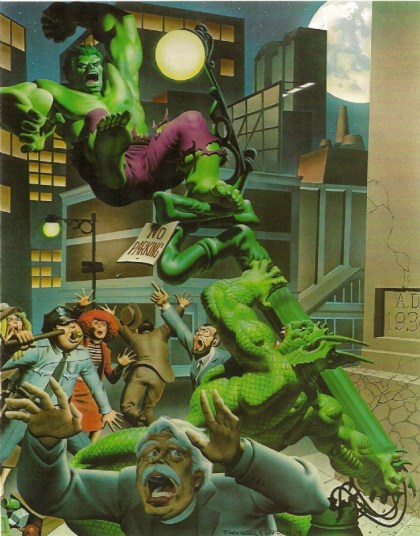 Way back in 1980 I had the coolest pictures of the Hulk ever! They came in the Marvel Super Hero Portfolio collection and one of the collections was based entirely on ol’ jade jaws himself!! I just ran across these on Ebay while searching for vintage super hero t-shirts and stuff and it was like a blast back in time!