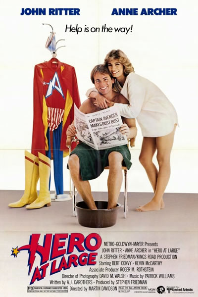 Yeah! What a great discovery made today in the world of obscure super hero movies! “Hero at Large” is now the number one movie I’m trackin’ down upon my first viewing of the the trailer-it features one of my favorite people ever-John Ritter AKA Jack Tripper!!!