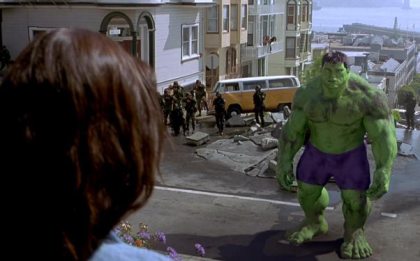 First the Ang Lee CG “dumb jock football player” Hulk…