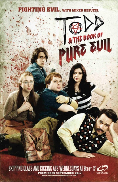 I just simply cannot believe that up until a few minutes ago I had never heard of the Canadian TV series “Todd and The Book of Pure Evil”! I was just on Fangoria checking out another amazing review for the upcoming Joss Whedon horror flick “Cabin in the Woods” (which I am definitely going to see next month) when I stumbled upon the ad for the “Book of Pure Evil” that said “Out Now on Dvd” so I did a quick search and watched some clips from it-it looks so awesome!