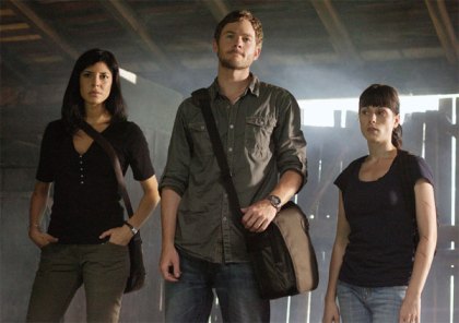 The premise is quite simple a trio of reporters head to Poland to check out the disappearance of a tourist there and end up in a tiny village in the countryside. There this quaint little town is filled with some seriously oddly aggressive people, one being Trevor Matthews, Jack Brooks himself. The three stumble upon more than just grumpy villagers as they head off into the woods to check out some creepy ass fog in hopes to find some clue to the missing person. Instead two of them (the women) get lost in the fog and end up staring at a demonic statue. It’s not long thereafter that the angry villagers run into them and take them prisoner and begin to sacrifice them one by one to their demonic gods.