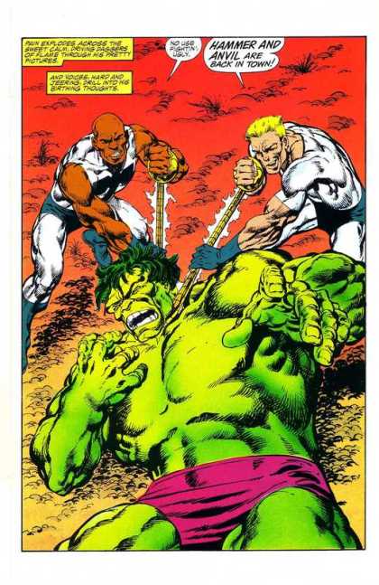 These guys were pretty cool I always thought at least, however when villains in the 1980’s were killed by Scourge it wasn’t exactly a good sign of their popularity! Their story is also pretty unique “Leroy “Hammer” Jackson was an African-American prisoner said to hate everyone and everything. As part of a chain gang, he was chained to a white racist named Johnny Anvil. The pair’s hatred of prison, however, was stronger than their hate for each other and they succeeded in escaping the chain gang while still chained together. Hammer stole a .38 handgun from a guard, and when the two encountered an alien who had crashed on Earth, Hammer tried to kill it but accidentally wound up saving the creature’s life instead; it fed on metal, and used the bullets fired at it to regenerate. The alien wanted to thank them, and replaced the chain linking them with a device that granted them superhuman powers. The two returned to prison seeking revenge, but wound up battling the Hulk instead.”