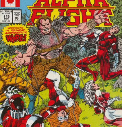 Yes Wyre is a D-lister from 1992 with an B-List background. He’s not very well known from his appearances in The Alpha Flight where his main nemesis was Wild Child, who at the time was a bit of a D-lister himself before he more recently graduated as a major villain of Wolverine. The Canadian mutant Wyre, much like Wolverine is a bit more of an anti hero, and actually has tangled with Logan before. He appeared back in 1992 and has genetically modified wires that can stretch from his body which he controls with his mind as well as a similar healing factor. His main mission was to take down members of a feral group of assassin called the Breed who were created from his DNA and quite possibly his hairy ass chest!