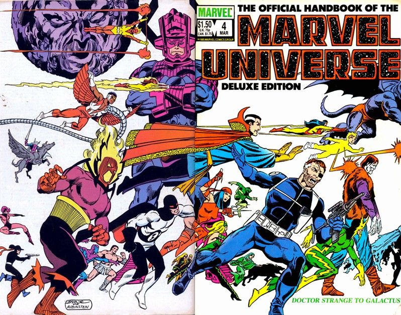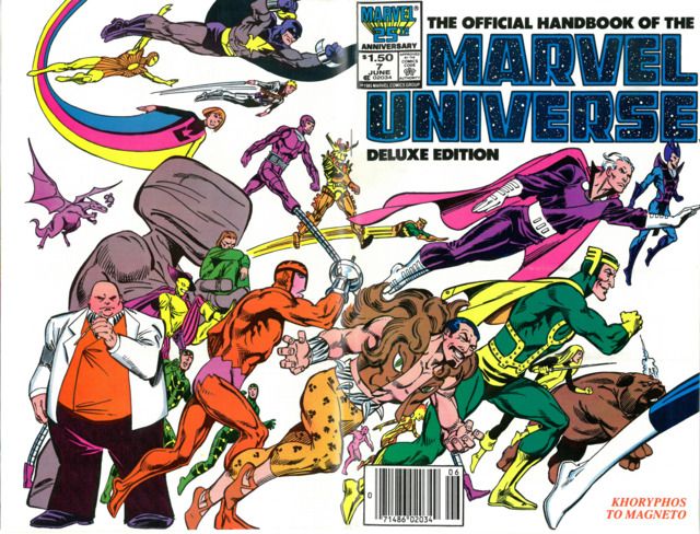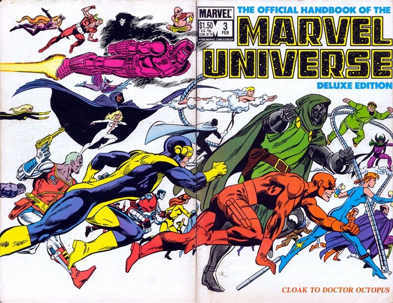 One of my favorite comic books of the 1980’s was “The Official Handbook of The Marvel Universe” (Deluxe Edition)! Yeah it wasn’t a real comic book per say but damn was it amazing! Back in 1985 all the way through 1988 Marvel released this 20 issue deluxe edition which featured EVERYTHING you could ever want to know about pretty much EVERY character in Marvel comics. This included their real names, specific powers, how much they could bench press, their history, their hometown, yeah I mean EVERYTHING. I spent hours and hours of my time reading these and brushing up on my favorite characters history. This must have taken some serious time to document as it listed the main life events of the heroes and villains that took place in the pages of the comic books. A complete history up until that point. This was a time when Marvel was truly an amazing company…