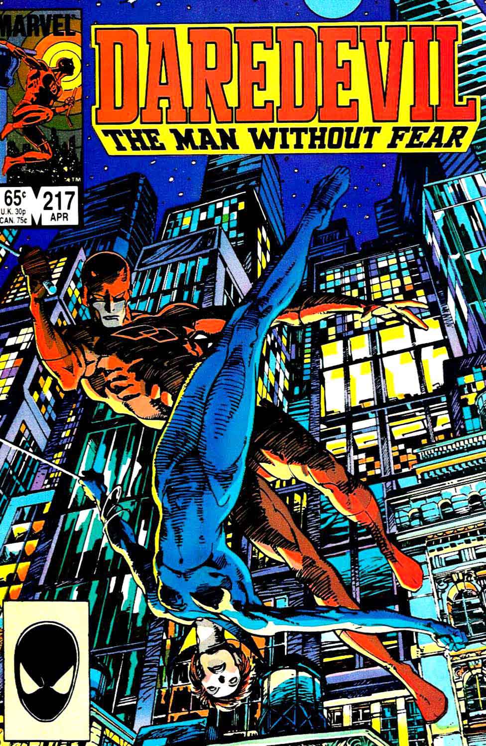Here’s a look at one heck of a great cover by the master Barry Windsor Smith way back from 1985 with Daredevil #217! This has always been a favorite of mine and there’s just no denying that Barry’s unique style rivals any current artist. Anytime in the 80’s that he was involved you just knew you were going to get something memorable. This particular cover is no exception to the rule, Barry gives us an epic cover with Daredevil & The Back Widow swinging high up in the skyscrapers giving our ol’ pal Spidey a run for his money for pure perfection in acrobatic form!