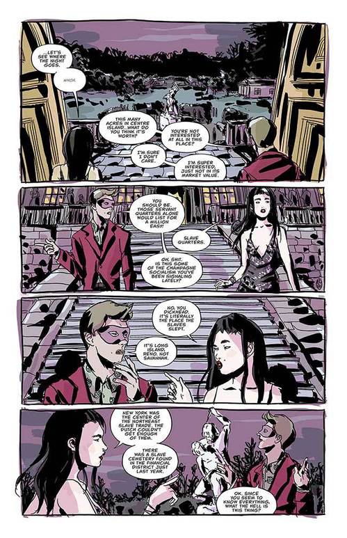 Here’s a cool solid debut comic book from Black Mask Studios called ‘There’s Nothing There’ from the co-creator Patrick Kindlon of the awesome series “We Can Never Go Home”. This issue starts off instantly with a cool but familiar feeling set up as we follow a woman named Reno who attends a mysterious elite costume party with one of her friends. Think a little ‘Eyes Wide Shut’ here as soon it’s revealed that things are set to get kinky real quick.