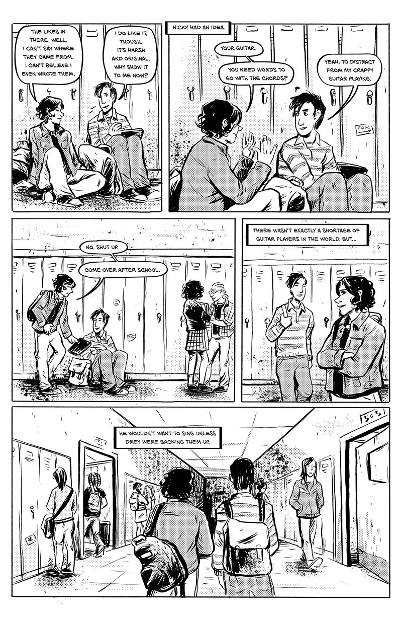 It seems Black Mask is at it again, releasing cool comic books! Yep ‘Last Song’ is out July 12th and it’s yet another excellent debut issue. There’s a lot of heart pumped into the story of Last Song and if you’ve ever played music and especially ever been in a band this one should really resonate. I spent a good portion of my life so far playing in bands, touring and dreaming at times of hitting it big. This awesome 64 page debut follows two guys who grow up together, learn to play music together and eventually attempt to give the rock n’ roll lifestyle a serious whirl. The two main characters Drew and Nicky have done pretty much everything together and decide to move out to L.A. in search of adventure instead of heading off to college to sign up for the mundane working grind. Nicky worries about his future, never being a kid again and states “I want to like what I’m doing so much that money doesn’t matter” as a teenager in the 80’s. He also lost his father at a young age to suicide which is sure to make this journey a bit more difficult down the road.