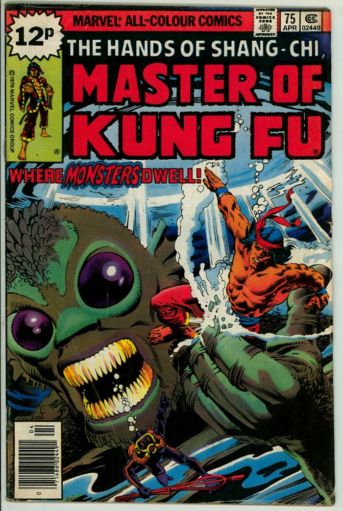 There are certain comic book covers that just pop right off the page at you when you see ’em & Master of Kung Fu #75 is one ’em! This cool cover way back from 1979 shows again just how damn good of an artist the master Mike Zeck is! This one shows Shang-Chi doing battle with a giant fish man that looks straight out of an H.P. Lovecraft story. I love the simplicity of some covers and this one gets straight to the point with an amazing underwater struggle facing the Master of Kung Fu. There are some truly jaw dropping covers in the Master of Kung Fu comic book back catalogue & Zeck’s done a great deal of them, ah those good ol’ days…