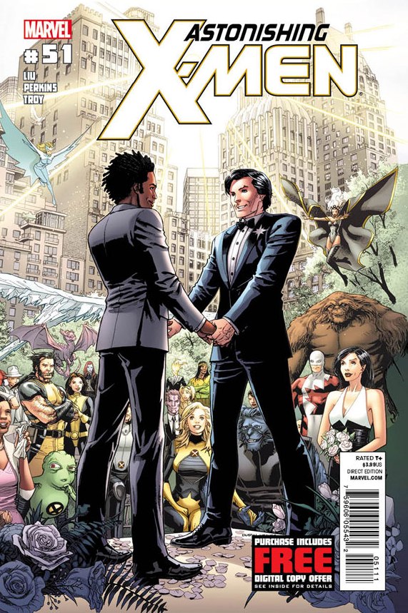 This leads me to my second point as recently I’ve seen that Marvel was looking to introduce the first openly gay superhero. Well good thing for Alpha Flight, they had the very first mainstream gay superhero, Jean-Paul Beaubier aka ‘Northstar’. Though it wasn’t openly stated in the team’s first series from 1983 it was clear to see the angle of the character presented there. Nearly ten years later in 1992 Northstar officially came out as gay to the public making mainstream headlines and then in 2012 again when the first gay superhero wedding took place prominently in ‘Astonishing X-men’ #51. His husband being Kyle Jinadu, a black man, was also notable in featuring a natural diversity within the now iconic superhero storyline.