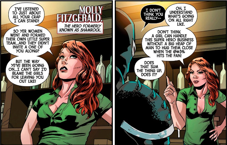 Shamrock is a true green Irish superhero, she made appearances in The Hulk, ROM, Alpha Flight, Guardians of the Galaxy, Excalibur and even had her own little story in Marvel Comic Presents #24 in 1989. In 2010 she appeared in Marvel’s ‘Girl Comics’ #2 where she’s contemplating getting back in shape and putting on the old costume again to fight crime. So there you go, Shamrock’s the ultimate super hero for the holiday!! No go grab some green beer and get a’ readin’!!
