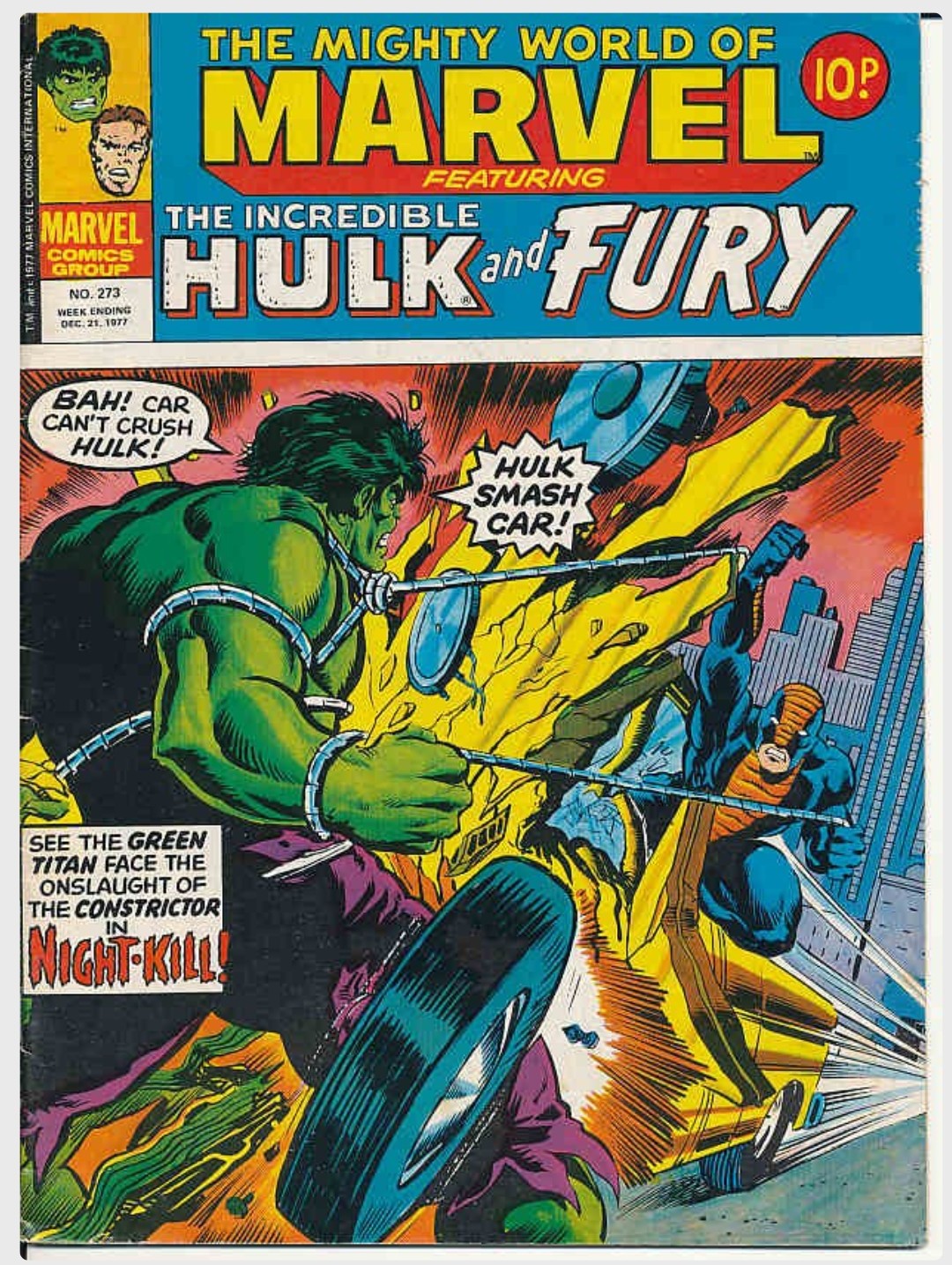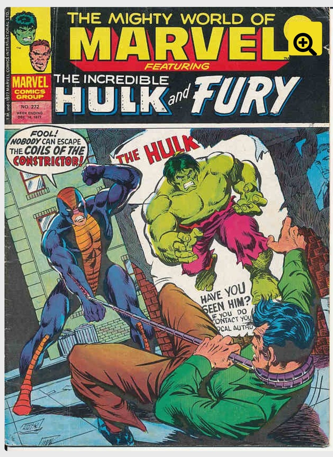 HULK SMASH! You BET! So one of my favorite issues of The Incredible Hulk goes way back to 1977, issue number 212 with amazing artwork by one of the Green Goliath’s best artists, Ernie Chan! This amazing one features the Hulk squaring off against one of my personal favorite villains in an unlikely encounter for the Hulk: The Constrictor! I thought it would be cool to showcase a couple alternate covers from the UK that were made especially for this particular reprint of a classic Hulk issue way back when, check these out!