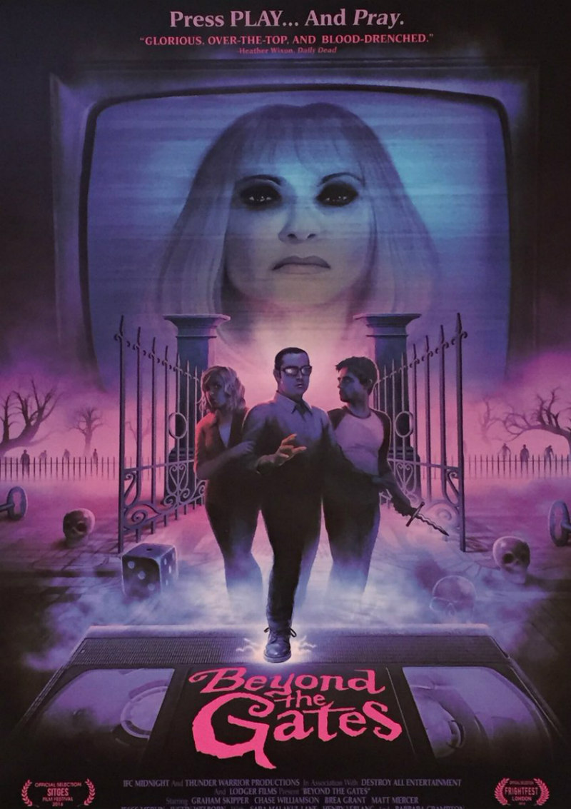 ‘Beyond The Gates‘ is the first feature film from Jackson Stewart, an indie horror movie I’ve been super excited about for a long time. Last night I dropped the seven bones on Google Play to check it out. What originally really excited me about this movie was it’s central focus on a sinister VHS board game from the 1980’s called…you guessed it “Beyond The Gates”. These creepy VHS games were pretty popular back when I was a kid, so of course I automatically dug the nostalgia factor that this one had to offer from the start. I also was quite happy to see Graham Skipper (The Mind’s Eye, Almost Human) as one of the leads and also horror icon Barbara Crampton (From Beyond, Re-animator, We Are Still Here) as the creepy host of the VHS board game.