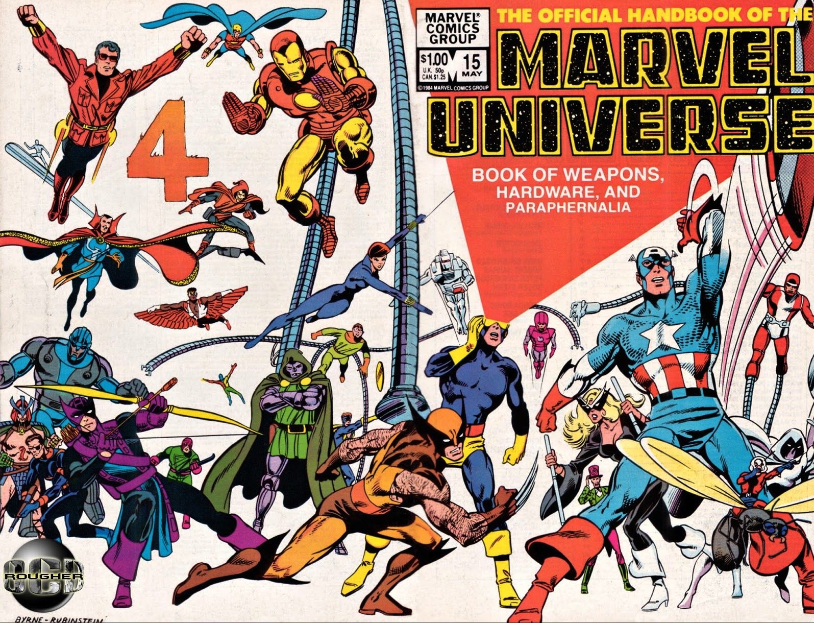 Each character was drawn by a different comic book artist and it included pictures of the characters in action taken from panels in the comics they’d appeared in. But my whole point here was to talk about the covers which the majority of them were drawn by my personal favorite John Byrne! The cool thing about the covers was that they could all be connected as one super duper long cover of the characters running. So Byrne pretty much tried to include all the characters from each alphabetical issue!! I’d love to see a video montage that follows each issue until it’s end! But until then I’ll include as many of these covers I can find right here! Check this out!